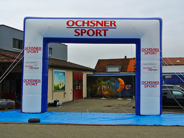 vollflächig bedruckbar und dient als Start- oder Zielbogen.